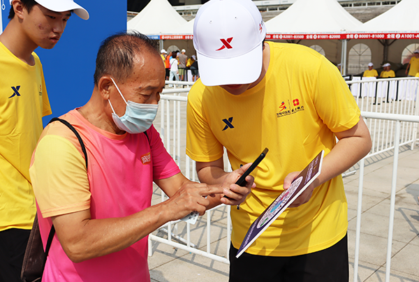 志愿者们全身心投入沈马物资发放工作,面对海量参赛物资,他们分工明确、有条不紊。他们耐心讲解领物流程与注意事项并仔细核对选手信息以确保物资精准发放;芯片检测环节一丝不苟,逐一对芯片进行检测,为比赛精准计时保驾护航;发放比赛物资时,依据选手登记信息,耐心细致且准确无误地将两万套物资发放到每一位选手手中。在全体志愿者的共同努力下,分发工作圆满完成。