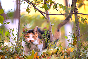 猫咪蜷卧在暖阳里等着被人轻抚