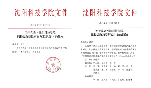 秉持为党育人、为国育才的教育理念,落实立德树人根本任务,培养德智体美劳全面发展的社会主义事业的建设者和接班人,全面推进伟大抗美援朝精神融入人才培养,先后颁布课程建设实施方案并成立课程思政教学研究中心,建设校级课程思政示范课39门,课程思政优质课14门,立项思政研究项目40余项,挖掘课程思政优秀案例100余项,形成案例集2个。先后与抗美援朝纪念馆、“九·一八”历史博物馆等机构签署共建协议,提升思政教学质量,课程思政建设提上新的台阶。
