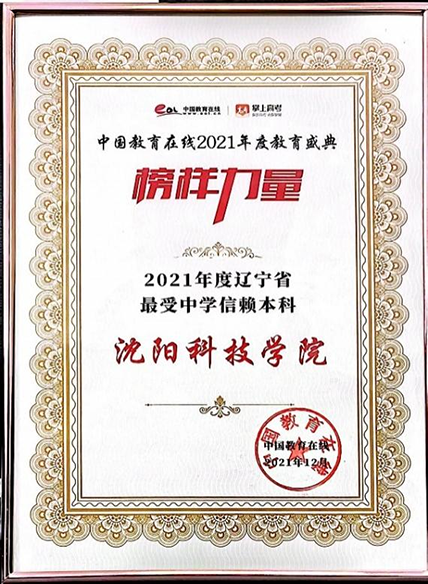 图为学校荣获“2021年度辽宁省最受中学信赖本科高校”