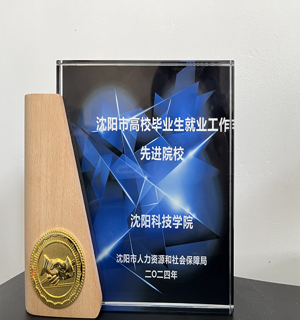 图为我校荣获“沈阳市高校毕业生就业先进院校”荣誉称号