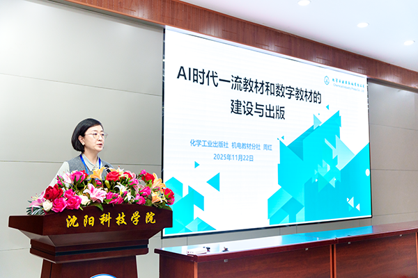 在高水平应用型人才培养论坛上,沈阳化学工业出版社编审周红以“AI时代一流教材和数字教材建设与出版”为题作报告